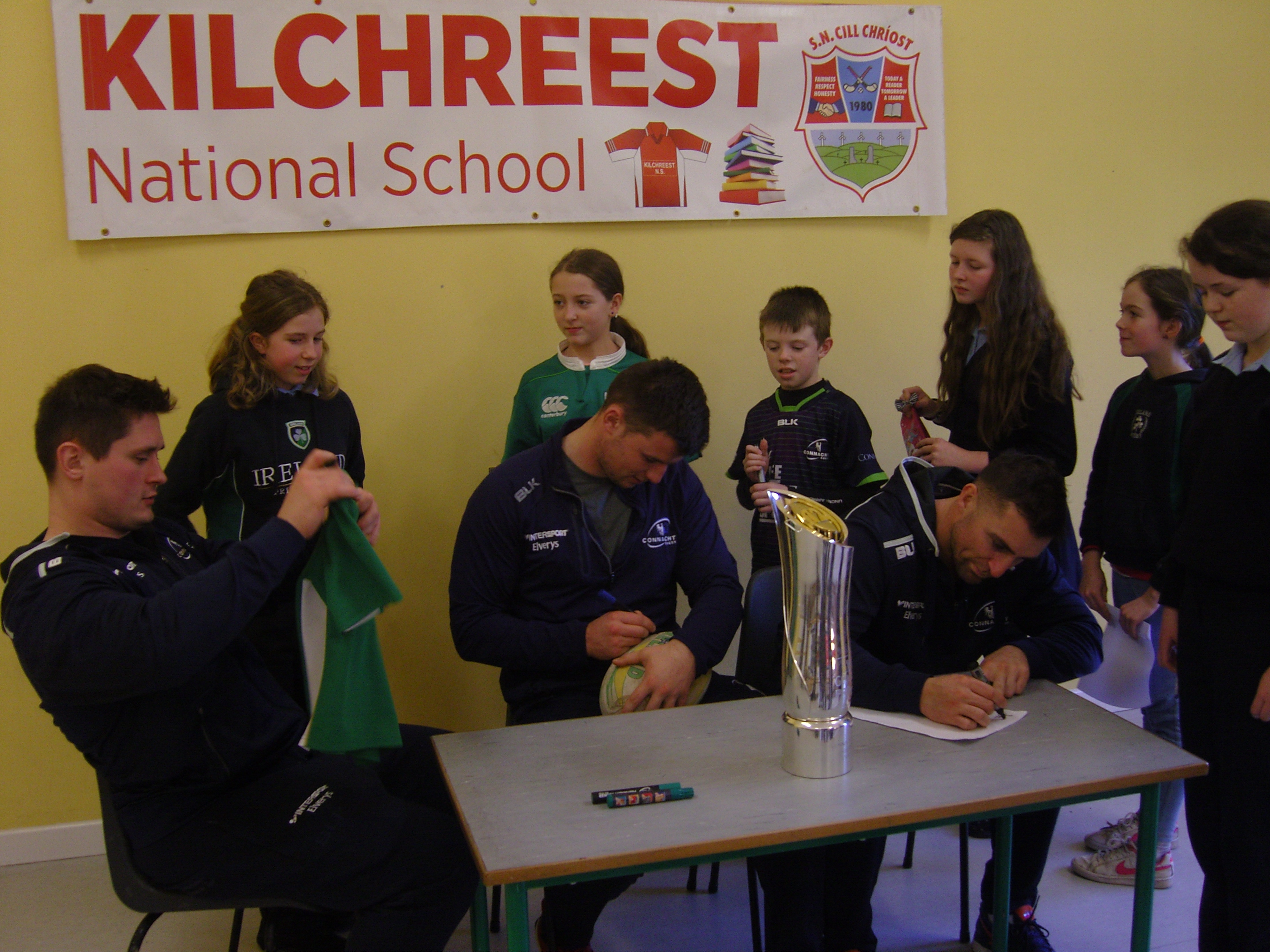 Visit from Connaught Rugby Team in Recent Events | 0 comments Members of the victorious Connaught Rugby team paid a visit to our school on Wednesday 30th November. The children really enjoyed talking with them and had the opportunity to play some rugby with the players. Connaught rugby team visit 2016